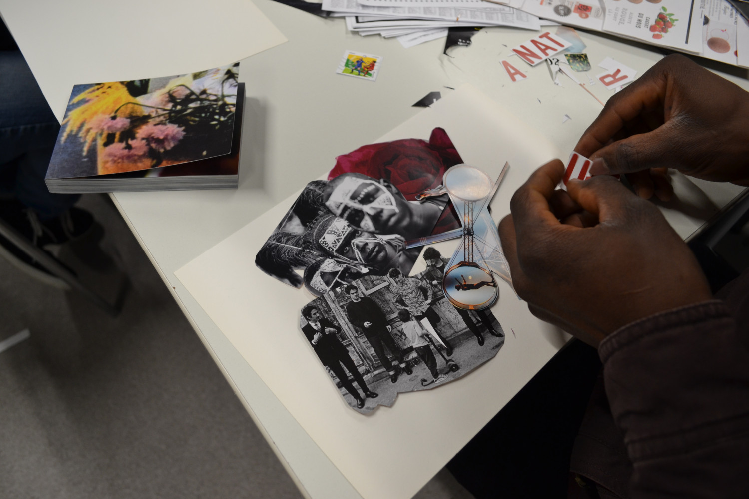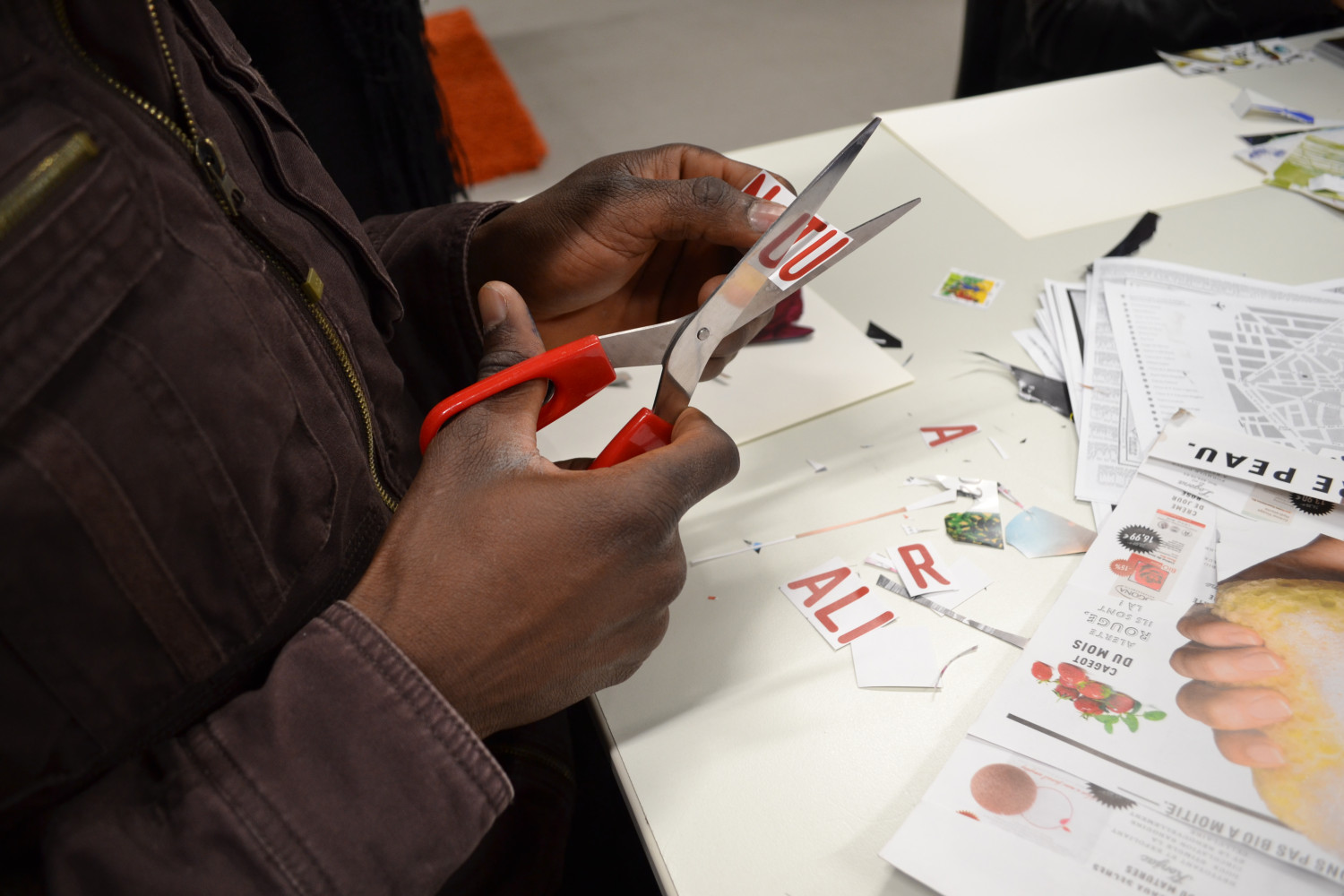 Au croisement de la création artistique et de l’approche réflexive en sciences sociales, cet atelier aborde la question de la construction sociale, spatiale et temporelle de l’identité. Les participant·es sont amené·es à réaliser des autoportraits utilisant la technique du collage à partir de matériaux divers (images, textes, tissus, etc.) découpés et assemblés de façon à composer des tableaux. La réalisation de ces compositions imagées permet aux participant·es d’explorer, de sélectionner et de représenter différentes facettes de soi qu’ils et elles peuvent agencer de façon à les partager avec les autres participant·es et de raconter des morceaux choisis de leur histoire. Prétexte pour parler de soi et se présenter, la juxtaposition et la superposition des images choisies permet d’évoquer les strates et l’épaisseur d’identités multiples, construites dans le faisceau des expériences, des assignations, des héritages, des projections et des histoires de vies. La technique utilisée permet littéralement de « toucher du doigt » l’entrelacs et la complexité de nos identités, qui ne sauraient se réduire aux catégories administratives, sociales et politiques. Depuis 2016, cet atelier initié et créé par l’artiste plasticienne et anthropologue Annalisa Lollo, a été réalisé dans divers contextes.